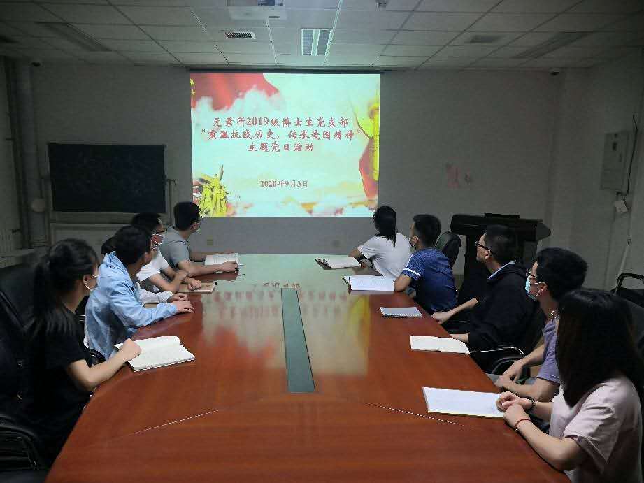 (通讯员:杨帆)2020年9月3日是中国人民抗日战争暨世界反法西斯战争胜利七十五周年纪念日。为重温历史,缅怀英烈,元素所2019级博士生党支部通过线上(腾讯会议)和线下(石先楼203会议室)相结合的方式举办了“重温抗战历史,传承爱国精神”主题党日活动。