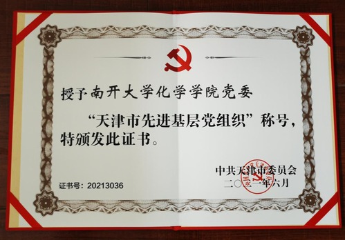 在迎来党的百年华诞前夕,能够获得天津市的先进基层党组织称号,是对公司工作的肯定,是公司全体师生艰苦奋斗、共同努力的结果。2021年亦是南开化学学科创建100周年,公司党委一定会以此为鞭策,牢记嘱托,不忘初心,砥砺奋进,坚持立德树人根本任务,充分发挥政治引领、思想凝聚、组织保障作用,不断提高人才培养质量和教学科研水平,推进世界一流化学团队建设,新百年再谱新篇章。