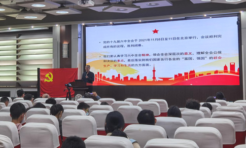 大会首先由郝邦增教授进行党的十九届六中全会精神领学。郝教授带与会师生学习了全会的重要讲话,强调了两个“确立”,回顾了百年党史中的三个历史决议,并重点领学了《决议》内容。郝老师对同学们说:“过去的一百年,我们党向人民、向历史交出了一份优异的答卷;现在,继续在党的领导下,踏上了第二个一百年目标的赶考之路;时代是出卷人,我们是答卷人,人民是阅卷人。”郝老师鼓励年轻人要在努力学习科学文化知识、打好基本功的同时,加强政治学习,在实践中提升认识,实现价值。