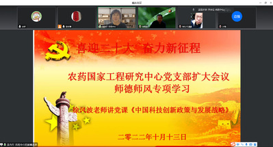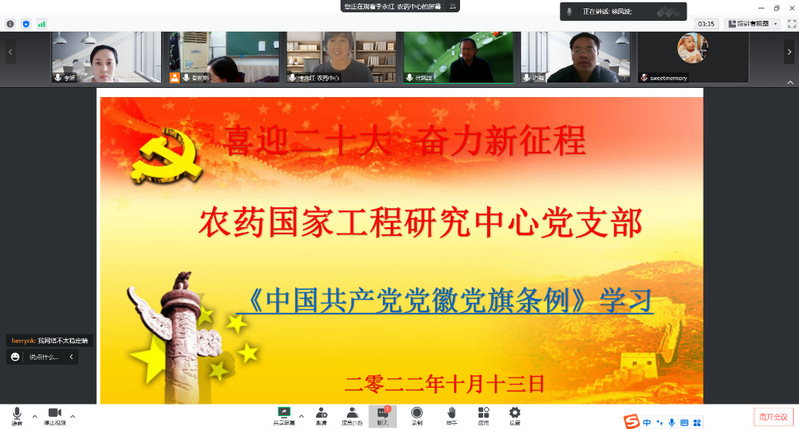 20221013日下午,农药国家工程研究中心党支部采用线上腾讯会议的形式,开展“喜迎二十大 奋力新征程”主题系列学习会。