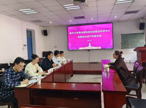 会上,李涛介绍南开化学及中心基本概况,人才培养和科研及成果转化情况;中心科研骨干介绍配体及均相催化剂、三芳胺光电材料、金属/元素有机试剂等方面代表性应用成果。
