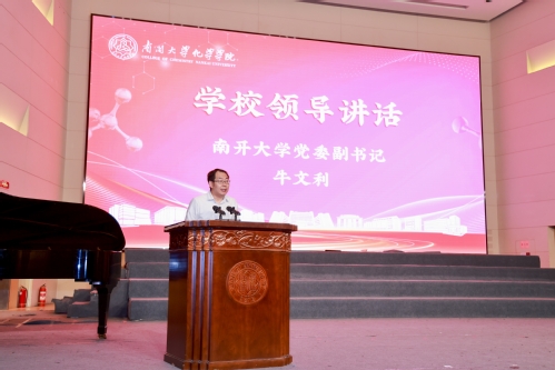 牛文利在致辞中对化院学子过去一年取得的优异成绩予以充分肯定,强调新时代南开化学人当以楷模为范,恪守“允公允能”之校训,砥砺品格,勇担使命。他寄语化院青年当立“鸿鹄之志”,胸怀“国之大者”,将个人理想熔铸于国家发展伟业,以创新之姿、实干之态投身中国式现代化建设,努力成长为兼具家国情怀、创新精神和实践能力的拔尖化学人才,为强国伟业贡献南开智慧与力量。